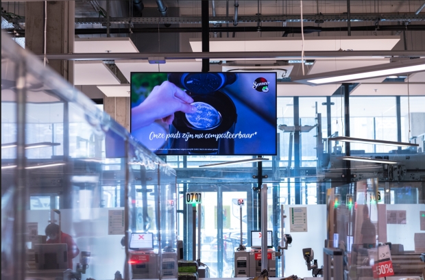Your creation shown on screens right at the check-out of Delhaize stores.