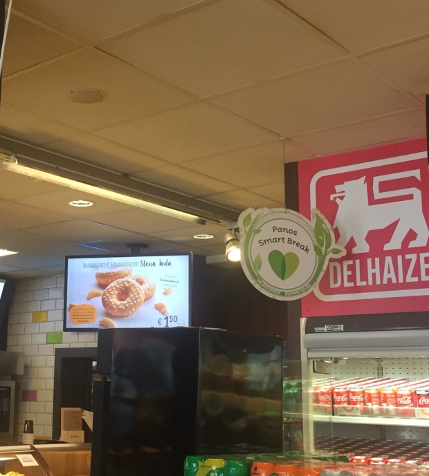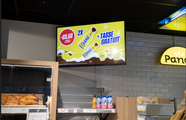 Catch shopper's attention at Delhaize Shop & Go areas.